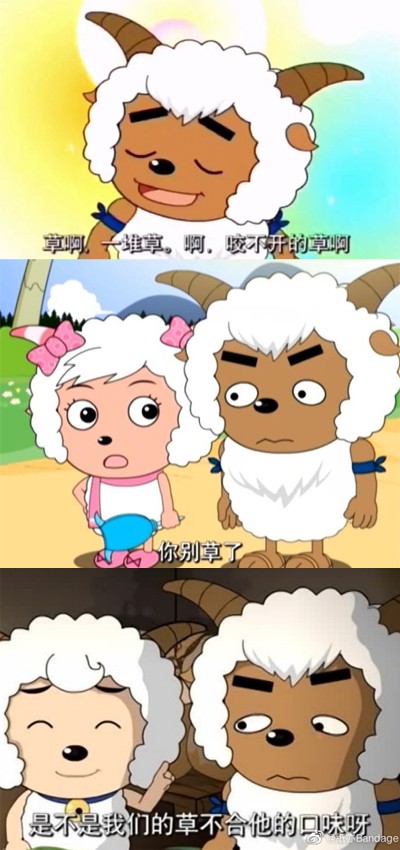 比如流传于网络上的各种喜羊羊表情包,质朴的语言+传神的表情,完美活用于各式场合。