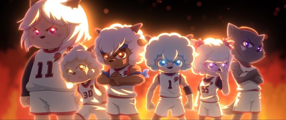 剧情也不仅限于“狼羊大战、邪不压正”那一套,就比如最近登陆B站的「筐出未来」,讲述的就是都市背景下,狼羊组队打篮球的热血故事。