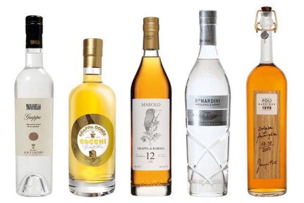 果渣白兰地(Grappa):意大利的 Grappa(字面意思是“葡萄茎”)起源于一种减少酿酒时浪费的想法。Grappa 通过发酵和蒸馏葡萄渣(葡萄皮、葡萄茎和葡萄籽上的残渣)制成,通常是透明的,不经过陈酿。一些酒厂会做陈酿,这将使得酒液呈现黄色或红色,这一般取决于使用橡木桶的类型。