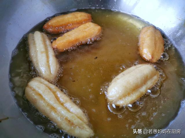 3、酵母版的油条一定要中小火炸,千万不要大火炸,炸油条用什么油适合,大火炸出来外面糊好些了,里面还有生面糊。