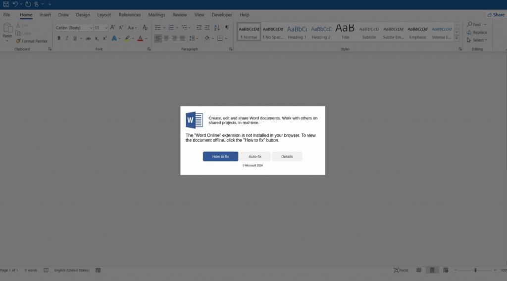 伪造的 Microsoft Word 错误会导致恶意软件