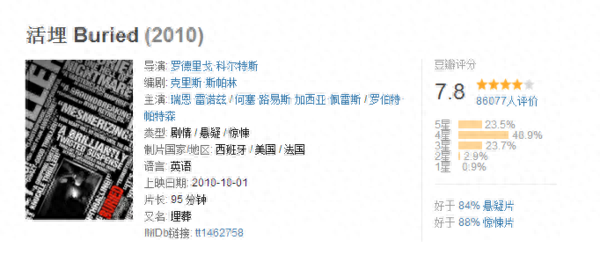 不同的是美国人2010年的这一版本,更具有讽刺意味,各种赤裸裸的现实和人性以及最后的结局。似乎除了《活埋》,所有的其他类似电影,最终都是解救成功。而《活埋》中男主角保罗以为希望降临的那一刻,一句:“对不起”,让保罗直坠地狱,生埋地下!