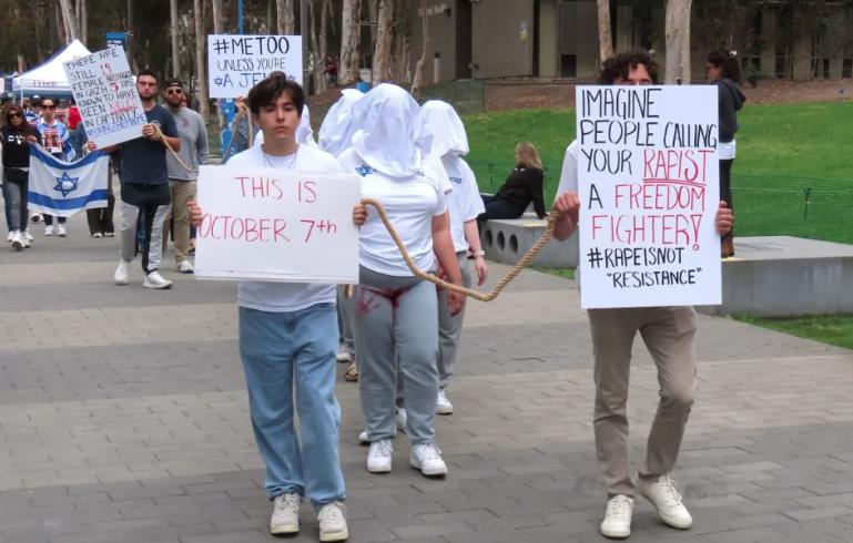 5 月 15 日,加州大学圣地亚哥分校(UCSD)的犹太学生举行示威,谴责哈马斯在去年 10 月 7 日对以色列妇女和女童犯下的暴行。