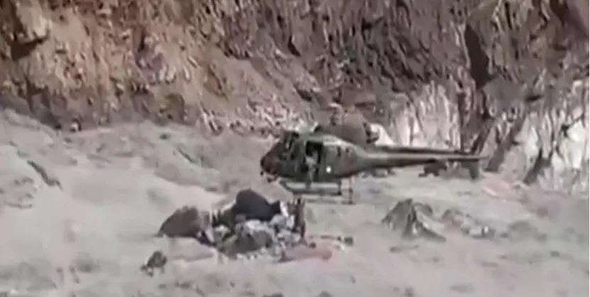 巴基斯坦派出直升飞机营救被困男孩。图源:视频截图