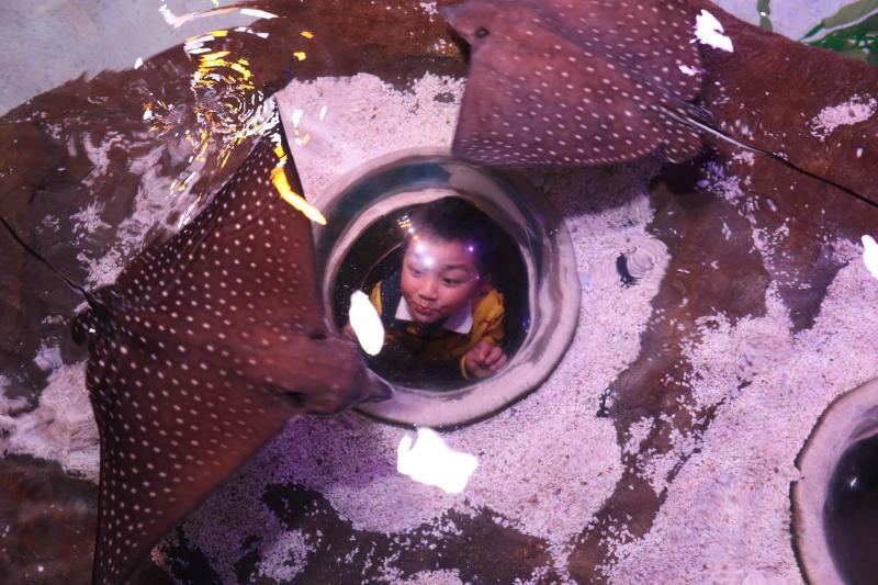 水族馆坐落于长风公园内银锄湖底13米,3层主体展示结构建筑。总面积达10,000平方米,拥有超过10,000多尾,300多种水生生物。在水族馆内,您可以体验热带雨林的另类风光,探索神秘的亚马逊河流域的水生生物;观看“史上活化石”的巨骨舌鱼捕食全过程,观赏加勒比海的异域风光;发现绚丽多姿的珊瑚鱼群,了解色彩缤纷的珊瑚鱼与众不同的逃生方式;漫步海底甬道,用心去感觉深海生物的千姿百态;体验鱼群在你身边穿梭而过的另类感受,了解深海是鱼类的美丽天堂。