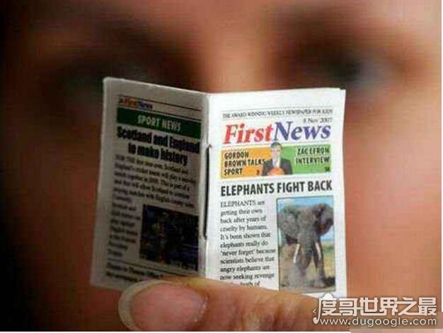 这就是经过吉尼斯世界纪录所认证的世界上最小的报纸,是在2007年的时候英国伦敦所正式发行的,发行量为1000份,比成年人手指头就大那么一点,并且里面的内容都是相当丰富,总共24页,想看其中的内容必须要用放大镜才能看清楚......【查看详情】