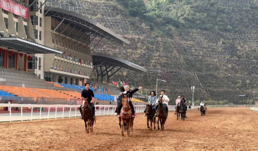 三都水族自治县被誉为 " 中国赛马之乡 ",赛马是当地水族端节的一种喜庆活动,水族群众崇马爱马,每逢端节赛马,场面热闹非凡。体验团在宽敞赛马道上领略了一次刺激的驰骋,酣畅淋漓之感让大家真切体会到水族同胞对骑马赛马的喜爱。
