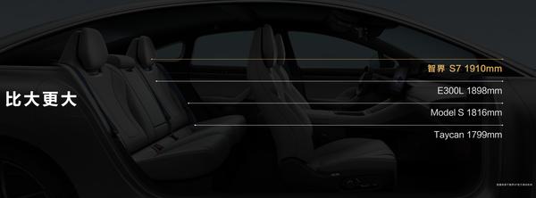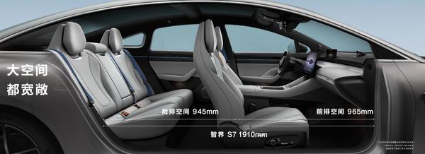 在以往的电动轿车上,由于电池包的侵占,车内空间表现往往不佳。但是这一点在智界 S7 上得到了大幅优化。由于采用了更合理的机械布局,为车辆带来了更大的座舱空间,座舱内空间利用率达到 88%,优于奔驰 E300L、特斯拉 Model S 和保时捷 Taycan 等车型。相比奔驰 E300L,智界 S7 整舱空间多出 150L,更是在后排拥有近 1 米的超大腿部空间。而在储物能力方面,副驾在配备零重力座椅的情况下,其前方还拥有上下双开的灵活储物台。此外,车辆还拥有一个容积 420L 的后备箱,以及多达 25 处的整车储物空间,无论是乘坐还是存放物品,都能带来越级般体验。