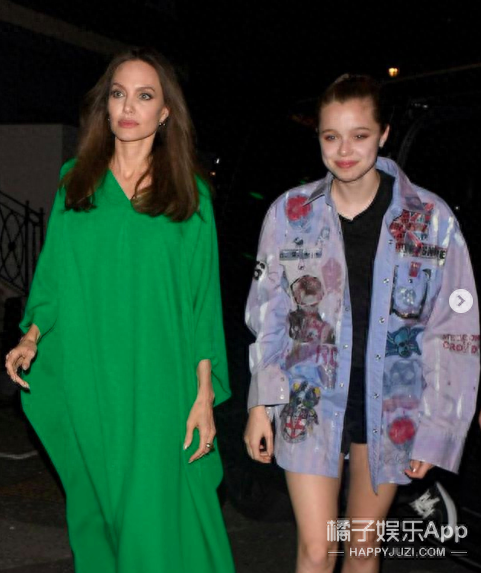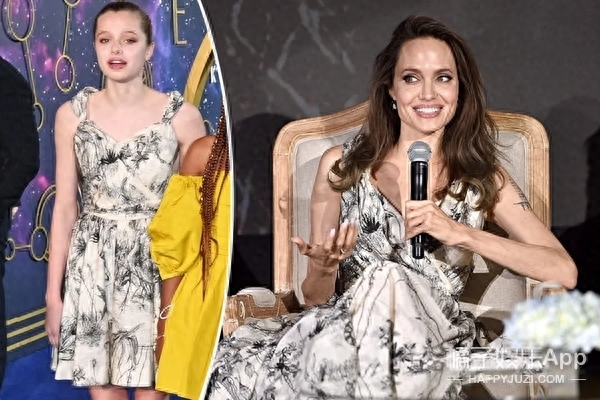 几天后朱莉母女又出现在伦敦首映礼。希洛穿着三年前朱莉印花连衣裙的剪裁版,显得青春又有活力。