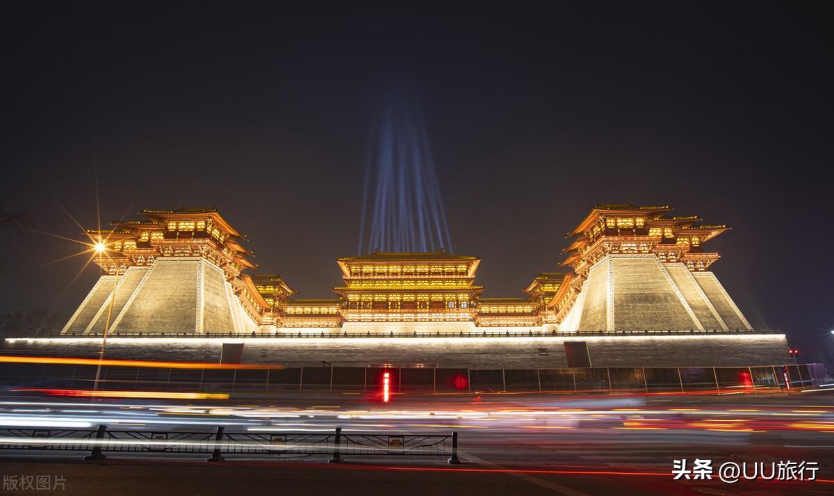 二楼有美术馆和城门博物馆,换一身汉服在露台上拍照,颇有唐风韵味。入夜后的应天门,灯火辉煌,仿佛重现大唐盛世。