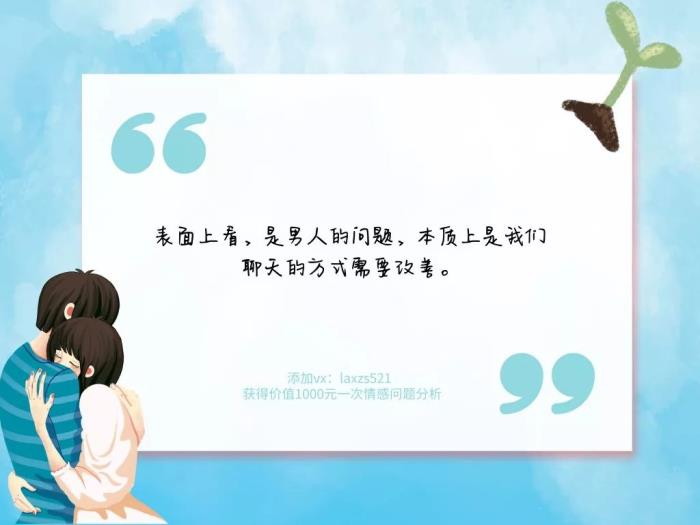 我们总是埋怨男人对我们不像以前那么好了,却很少反思,我们自己用什么样的方式在和他沟通交流,却很少去思考我们是不是伤害到了他,这些问题才是关系当中的本质问题,只有解决了这些问题,我们才能够真正的让他,几十年如一日的爱你。