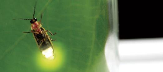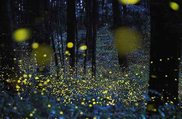 绿光。这些光都是由各种生物发出的。殊不知,萤火虫约有 1500 种,发光颜色分黄绿色和橙色,亮度也各不相同。萤火虫发出的光不仅有很高的光效率,而且光线柔和,非常适于人的眼睛。