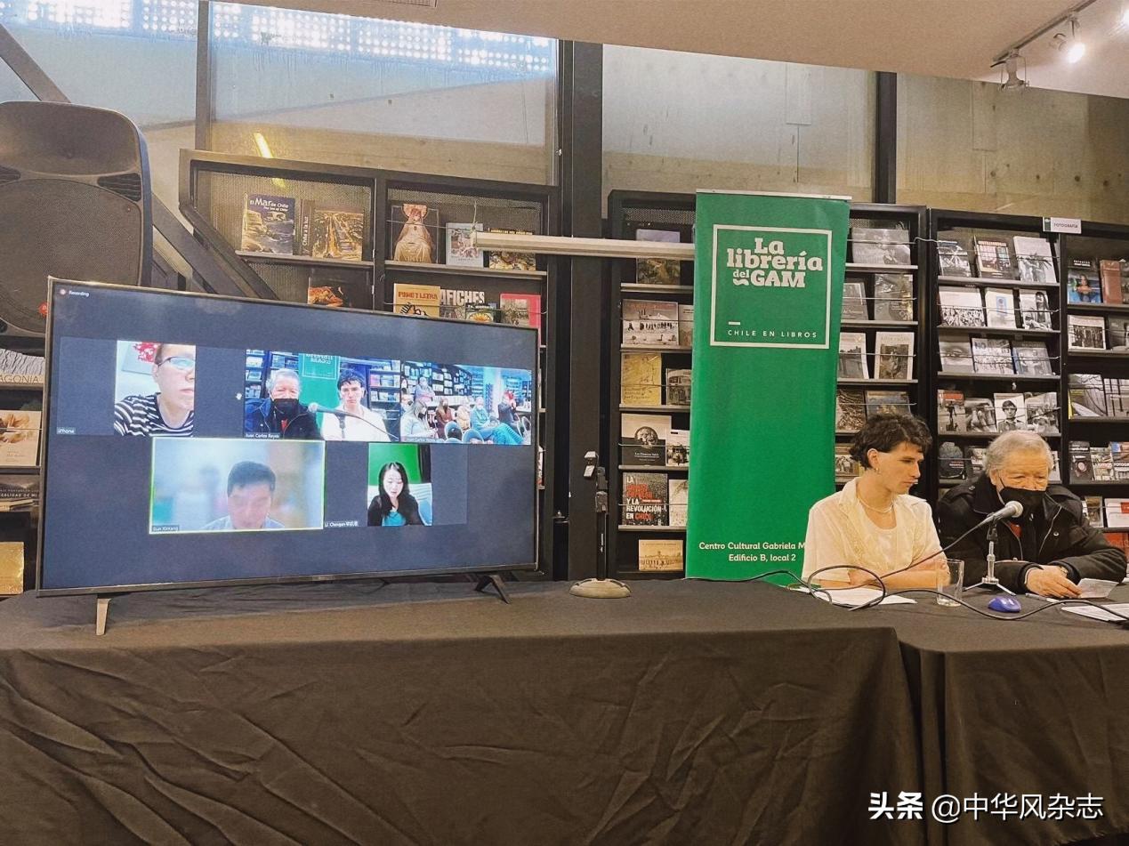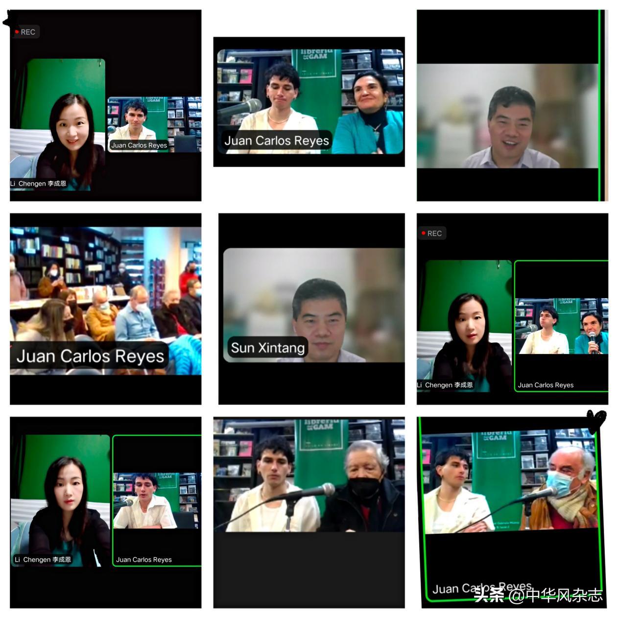 李成恩参加智利“中国诗歌工作坊”视频对话现场。