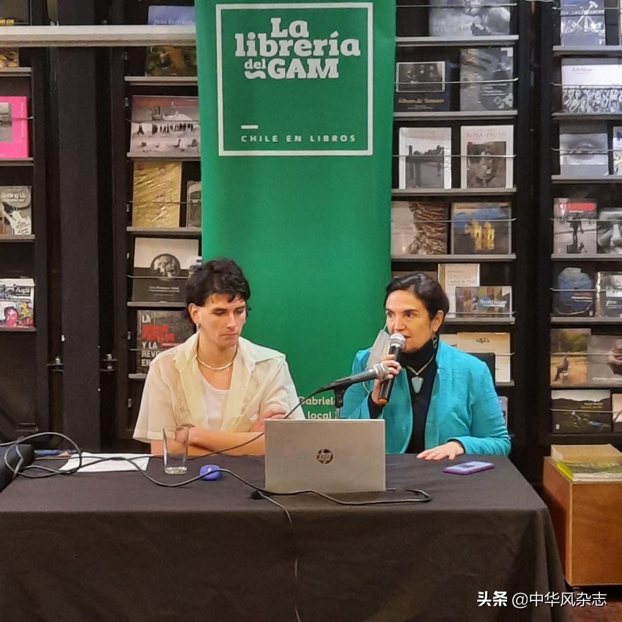 智利诗人马丁·洛佩斯(左),辛普雷门特出版社社长、米斯特拉尔中心书店总经理莫妮卡(右)。