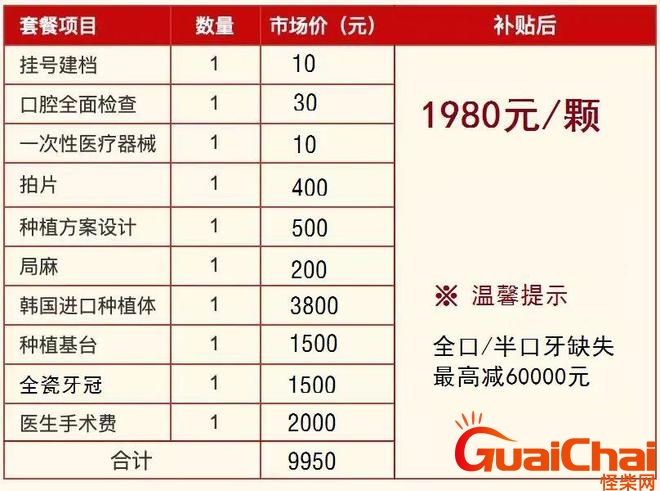 没错,你看到的大多价格表都是在坑,只是说了种植牙价格,没有说牙冠,我们种完植体和基台后不可能裸奔不装牙冠!有的价格表故意展现是不包含全瓷牙冠的钱,如果你欣然接受,那么必然会到医院产生一个落差。往往医院会根据你种植牙齿的数量,再给一点优惠或者折扣来弥补你的心理落差,但是实际上是超过网络说的种植牙价格表价位的。