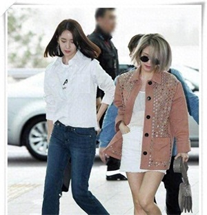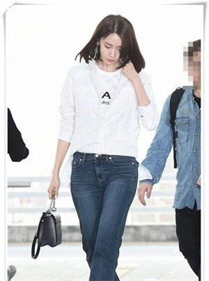 那么我们再来看看身高168的林允儿穿黑色阔腿裤,对比郑秀妍是什么样的感觉吧!身穿白色衬衫搭配牛仔裤的林允儿,看起来非常的干练时尚。