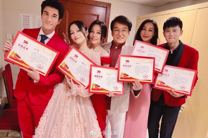 今天下午文艺晚会《奋斗吧中华儿女》参加的演员们晒出了他们排练时的合影,张靓颖和张杰晒出的合影中有一张是成龙、王力宏、韩雪、张靓颖、张杰、张韶涵他们6个人手握证书的合影,大家非常和谐亲如一家。