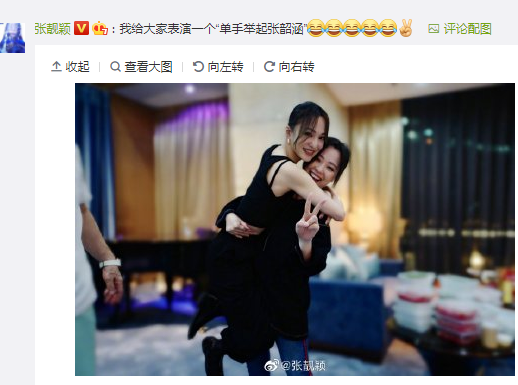个性爽快的张靓颖看到挑事的网友评论,立即补了一张她单手抱起张韶涵的照片,力证不要戏太多,我们好着呢。不过这位穿红色的美美的张靓颖大美女,你这样单手抱起人家张韶涵,力气这么大,男友力十足,你还考虑过嫁人吗?谁敢娶你呀。