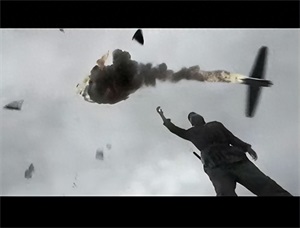 在剧中,抗日英雄把炸弹放在山上,通过炸弹爆炸溅起的飞石击落飞机。哈哈哈哈哈哈哈哈哈脑洞真大。