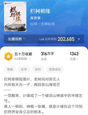 这本小说连载初期着实掀起了一波仙侠热潮。那时候仙侠赶上青黄不接,好作品大多完结,新作品大多还没有名气。《烂柯棋缘》的到来,彻底为仙侠打开了局面。也就是从这本小说开始,仙侠领域迎来了如今再度兴盛的局面。