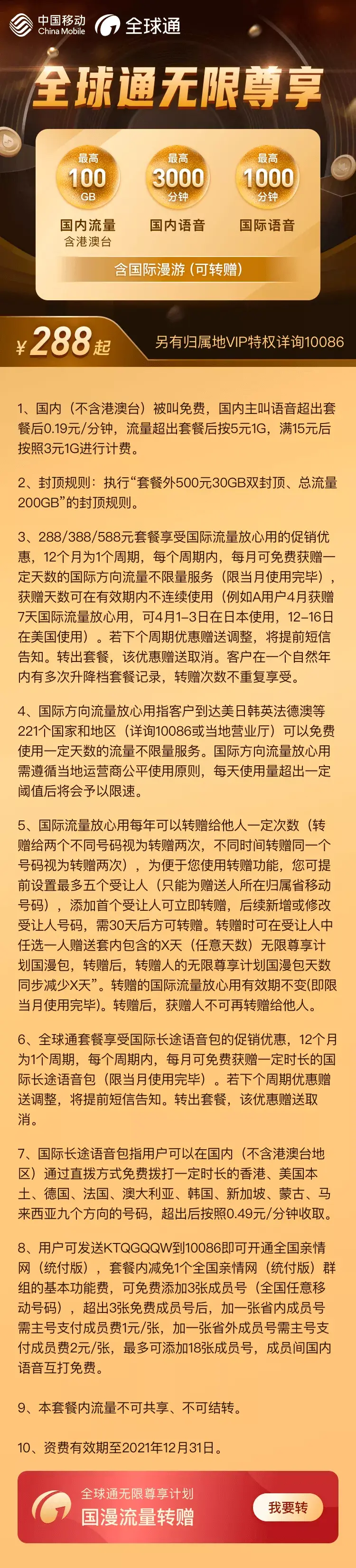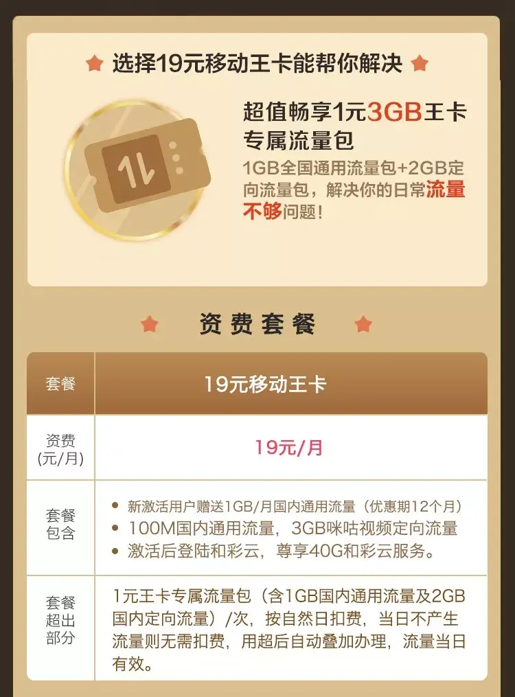 (移动王卡、宝藏卡)