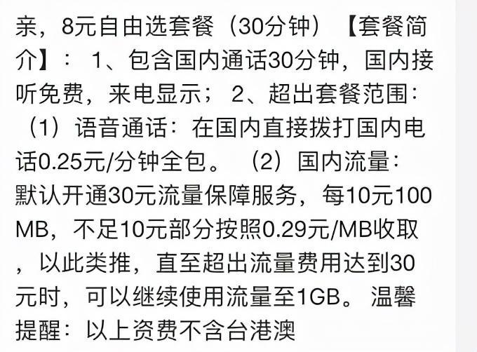保号套餐 其实就是价格最低的套餐,在自由选套餐中选择8元30分钟语音套餐或者8元100MB都可以