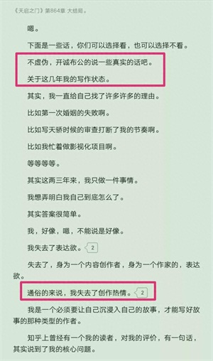 在总结里他解释了一下这几年总是断更的原因——失去了创作热情。