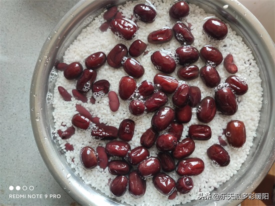 第一步,需要将糯米,大枣和芸豆泡一晚上