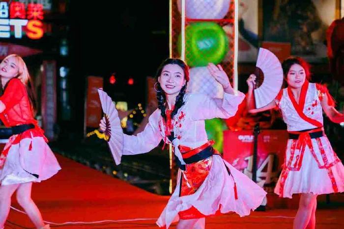 要说重庆今天晚上哪里最闹热?肯定是机场路旁的砂之船重庆两江奥莱。这是属于重庆人的购物狂欢节,可以从早买买买到晚上。而在今天夜晚八点迎来了第一波高潮,当潮玩音乐机构“斜杠研究所”亮相喷泉广场,现场的顾客也躁动起来。