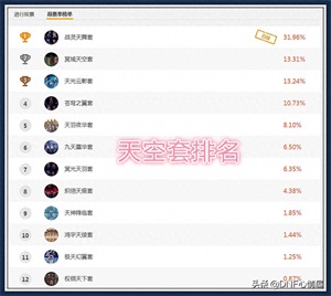 对于天空套,玩过地下城的勇士都应该知道,属性比高级节日套强,外观也十分好看。“WeGame”此前进行了最美天空套投票,而今已经圆满结束,战灵天舞套荣登榜首,投票人数遥遥领先。而权倾天下套,则投票人数最少,处在垫底的位置。