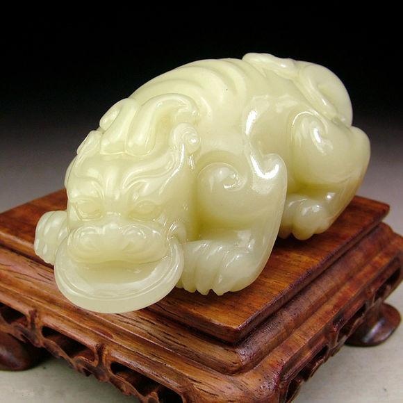 4、貔貅张开嘴巴并且一条后腿向后伸的是招财的,闭嘴蹲姿的是守财的。