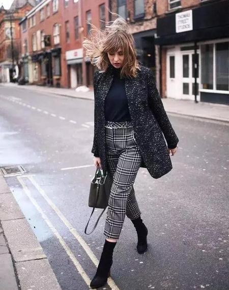 把裤脚收进袜靴中,营造出的上松下紧的效果也让腿部线条更为显长。这样的穿法适合小腿线条不够好看的仙女,用运动裤或宽松的长裤遮住小腿,展露出纤细的脚踝部分,一点小心机让整体LOOK更加个性哦!