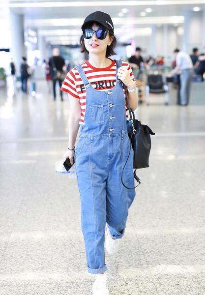 吴昕这样搭配红白条纹的T恤更是显得青春亮眼哦!活力值又飙升了好几个度!而且牛仔蓝和红色更容易擦出火花哦!