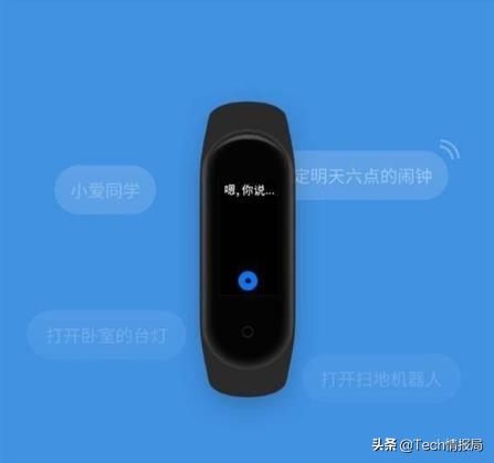 小米手环4还有一个非常大的亮点就是新增了智能语音助手小爱同学,直接用手环呼叫小爱同学,可以实现语音备忘、控制智能家居和实时查询信息等功能。