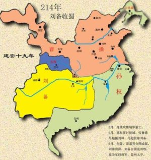 蜀国(221 -263),即蜀汉,也叫季汉。它是三国时期中国西南部的一个政权。东汉末年,天下大乱,汉室刘备在军阀混战中崛起。魏黄初二年(221年),在称帝(蜀),继续统一汉朝,国号“汉”,史称。蜀汉从刘备,昭烈帝,开始,最后去了刘禅,在那里他生活了43年。在其鼎盛时期,它占领了据荆州和益州,国力强大。然而,在失荆州夷陵和关羽, 刘备战败后,诸葛亮统治了这个国家,恢复了生产,这使它能够与三个国家之一的魏吴竞争,主要包括益州, 汉中,南蛮和其他地方(今天的四川和云南,北方的贵州,以及旧的汉中府的陕西)。