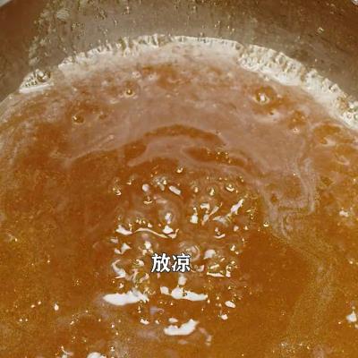 4、加冰糖、米醋,开小火,熬至全部融化,然后放凉