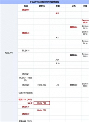 Helio P90在手机CPU天梯图中的性能排名
