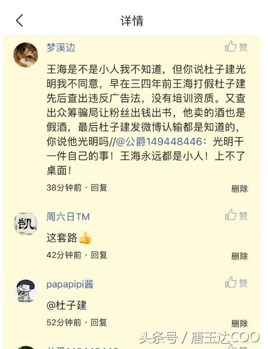职业打假人王海现在开始打假杜子建了,知名自媒体人也开始了揭露之旅,不知道下一步,杜子建准备收场?