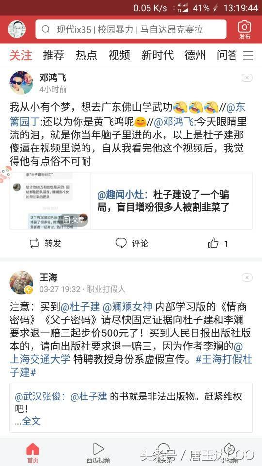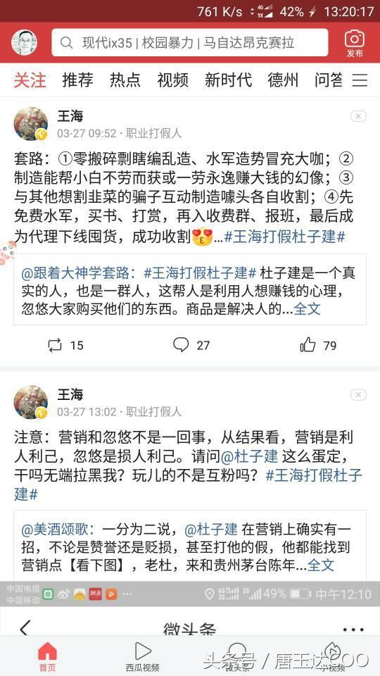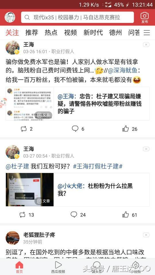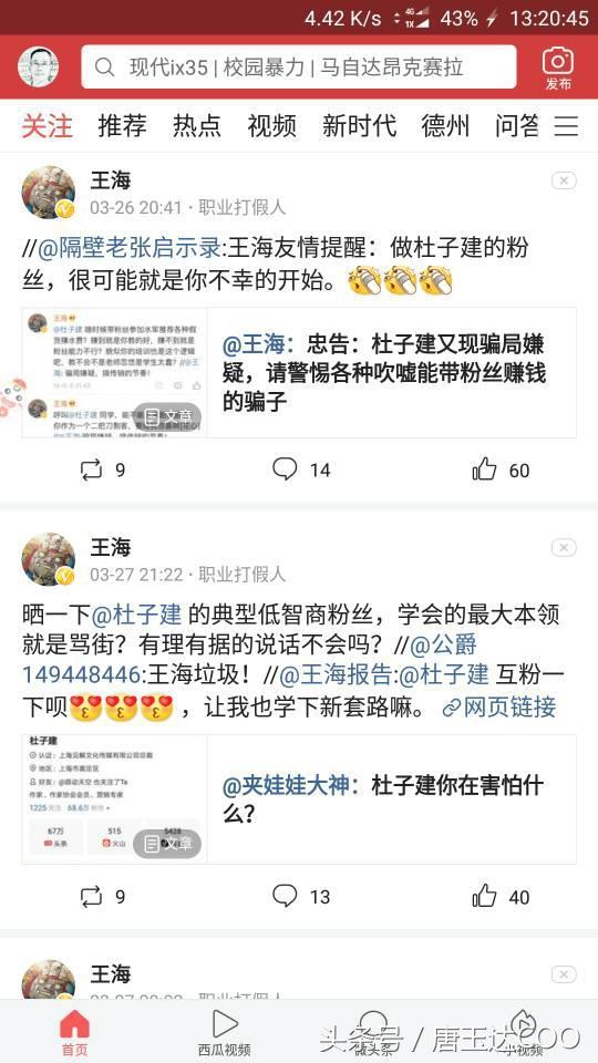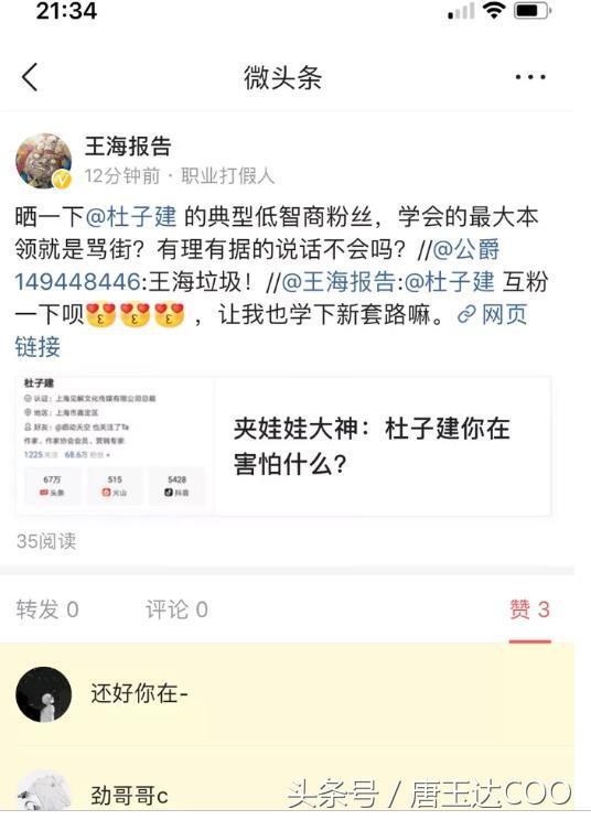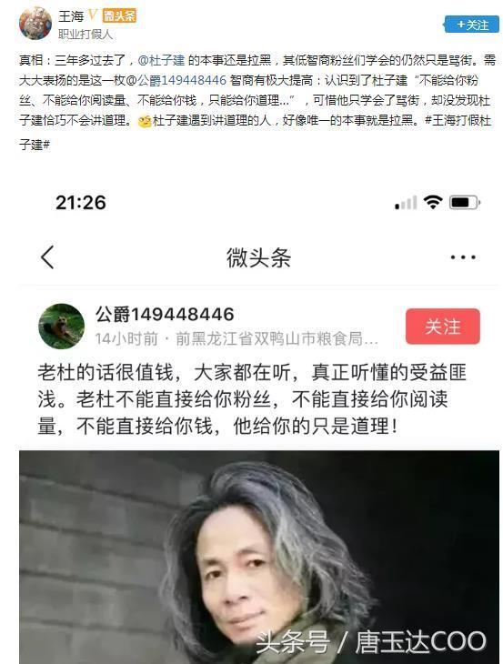 王海打假杜子建,自媒体人声讨,杜子建拉黑还不算完,铁粉无奈