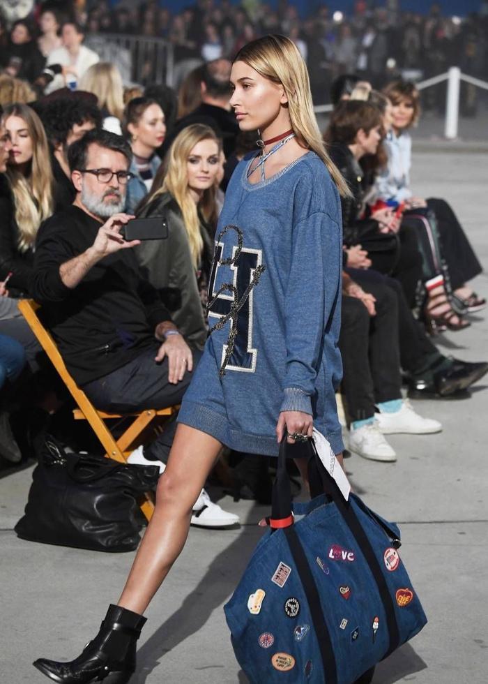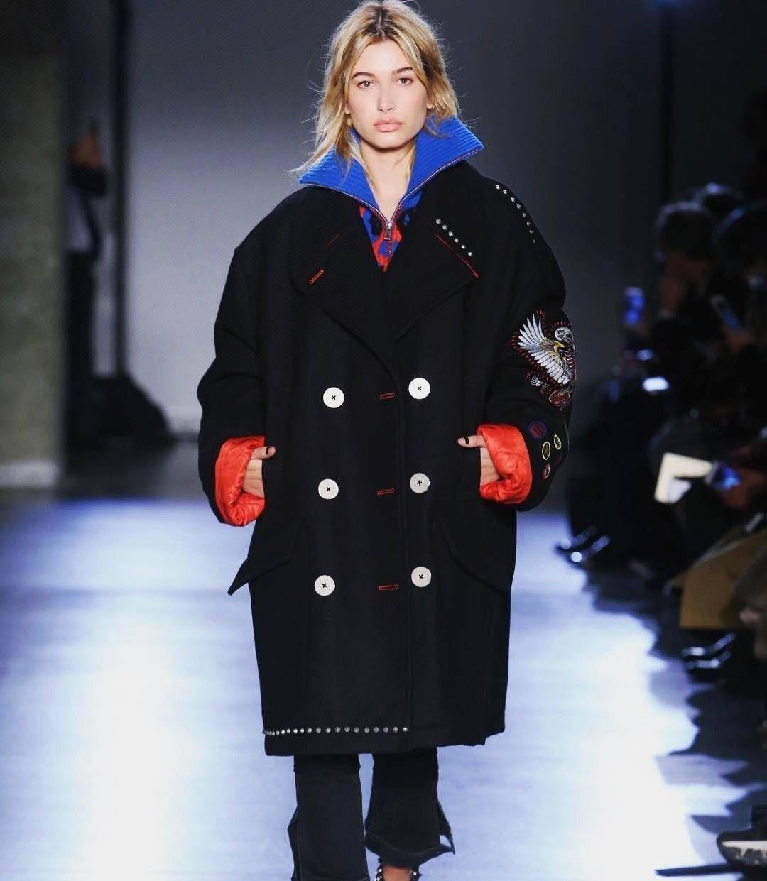 这是去年九月,海莉鲍德温在伦敦时装周的走秀现场的第一套造型。