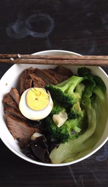 卤牛肉,水煮西兰花配茶叶蛋