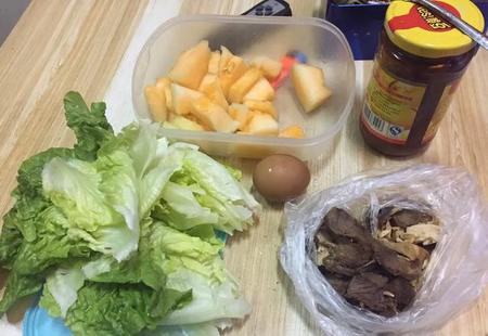 最后一个更简单,生菜,哈密瓜,卤牛肉,茶叶蛋
