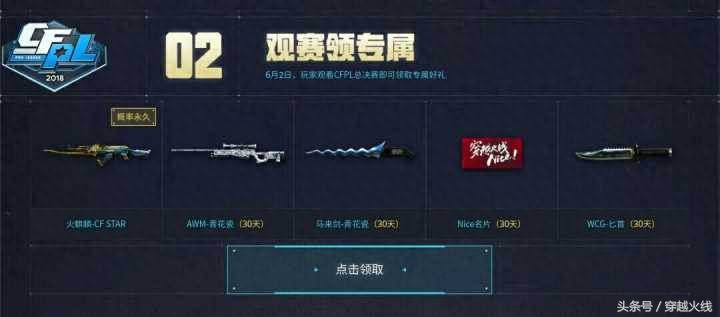 助力总决赛,自然不用忘记观看比赛了,在6月2号活动这天,CFer只要观看了CFPL总决赛就可以领取专属的武器道具,不仅仅有青花瓷系列武器,还有稀有的永久CFS火麒麟皮肤等你来抽取哦~~~~~~