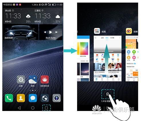 对策:运行游戏等大型复杂应用前先清理后台,释放内存给前台应用运行。操作方法:点击屏幕右下角的虚拟按键,向上滑动关闭单个应用程序,点击**桶关闭所有后台应用。