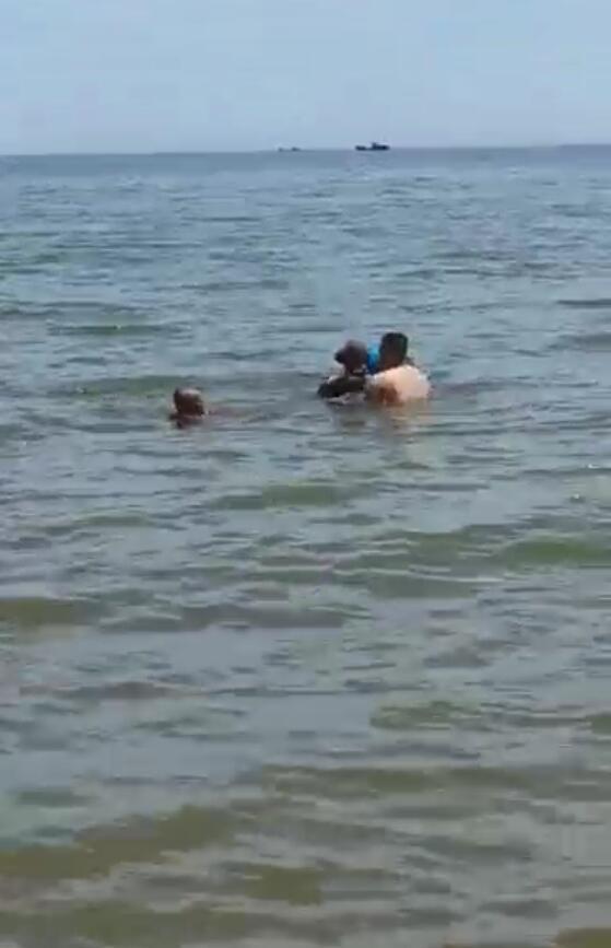 听到喊声,附近几个正在野餐的游客闻讯而来,其中一个30多岁的大哥甩掉上衣“扑通”一下就下了水,游泳圈都没拿,直奔受困人员。随后,一个在海边栈道上跑步的50多岁的老大哥也跑了过来,把手机递给张旭后转身就冲向海水中。