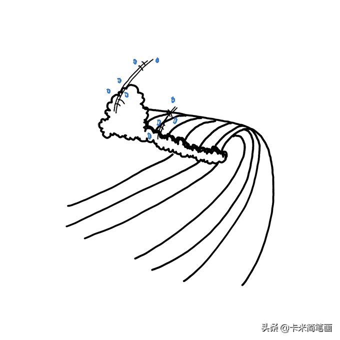 第八步:顺着波浪方向画一些流动短线,海浪就完成了。
