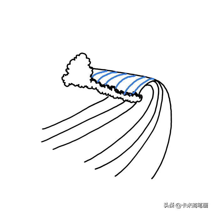 第五步:对着浪尖部分,画好所有弯曲的轮廓线。