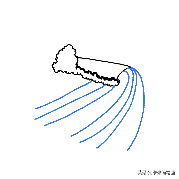 第三步:在浪花处引出两根线条来画出顶上的波浪。
