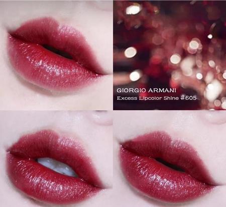 跟雅诗兰黛有异曲同工之妙,但是颜色却相对来说比较低调亲和一点的,来自阿玛尼黑管605,带有微微细闪,暗红色调恰到好处,不凌厉,但也不会让人轻易忽视。