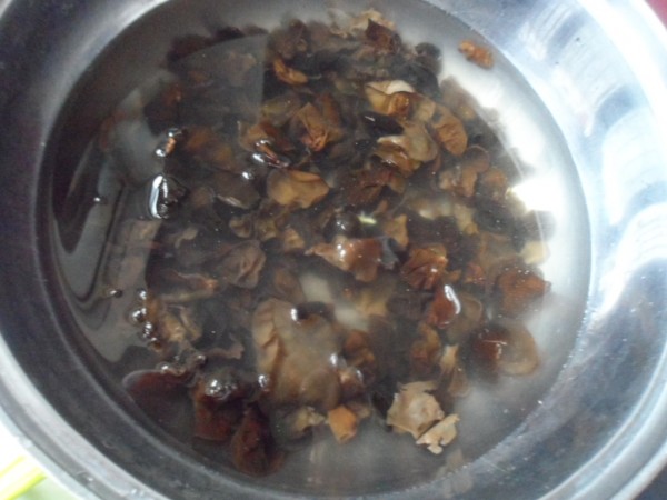 第一步,首先我们将所有的食材清洗干净,将黑木耳提前用水浸泡一段时间,将其泡发,香菜切段,葱切段,大蒜切片,青椒、红椒切段,放在盘中备用。